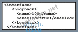 The code in the exhibit is an XML representation of a configuration for a loopback interface. The <enabled>true</enabled> tag within the <Loopback> tags indicates that the loopback interface is being enabled, or "unshut." In Cisco IOS, shutting down an interface means administratively disabling it, preventing it from forwarding or receiving traffic. Conversely, unshutting an interface enables it to become active and operational. References: * Implementing and Operating Cisco Service Provider Network Core Technologies (SPCOR) * Cisco's official documentation and e-learning resources on NAT and interface configurations.