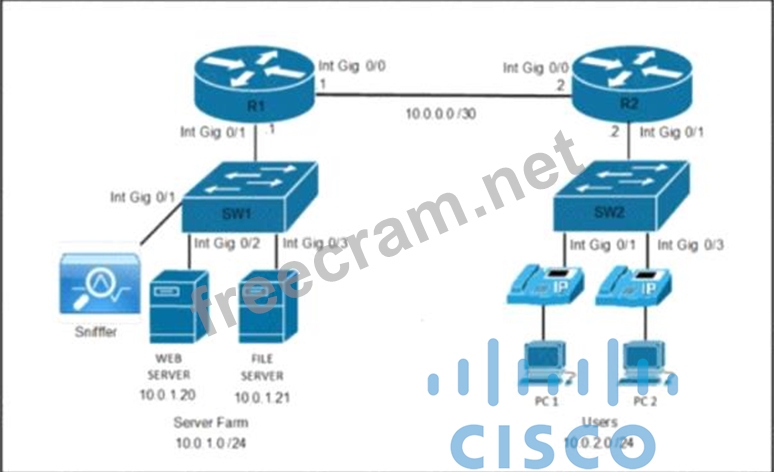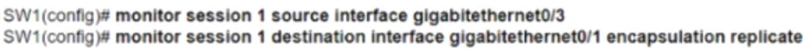 To analyze traffic from the file server with a packet analyzer on switch SW1, the network engineer would need to configure a SPAN (Switched Port Analyzer) session. This involves specifying the source interface from which traffic will be mirrored and the destination interface where the packet analyzer is connected. The correct commands to achieve this are found in Option C, which includes setting up the monitor session with the appropriate source and destination interfaces.