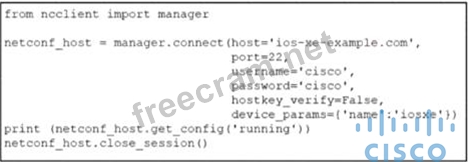 Refer to the exhibit. An engineer deploys a script to retrieve the running configuration from a NETCONF-capable Cisco IOS XE device that is configured with default settings. The script fails. Which configuration must be applied to retrieve the configurauon using NETCONF?