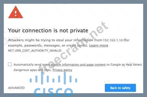 Refer to the exhibit. An engineer is designing a guest portal on Cisco ISE using the default configuration. During the testing phase, the engineer receives a warning when displaying the guest portal. Which issue is occurring?