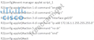 An engineer must create a manually triggered EEM applet to enable the R2 router interface and assign an IP address to it. What is required to complete this configuration?