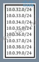 The task is to create an access list that allows traffic from a specific range of networks while logging the traffic. The networks in question span from 10.0.32.0/24 to 10.0.39.0/24. To summarize these networks into a single entry, we use a subnet mask that encompasses all the individual /24 networks. The correct summary uses the wildcard mask 0.0.7.255, which corresponds to the subnet mask 255.255.248.0. This wildcard mask allows for all addresses from 10.0.32.0 to 10.0.39.255, which includes all the specified networks.