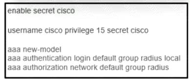 Refer to the exhibit. The network administrator must be able to perform configuration changes when all the RADIUS servers are unreachable. Which configuration allows all commands to be authorized if the user has successfully authenticated?