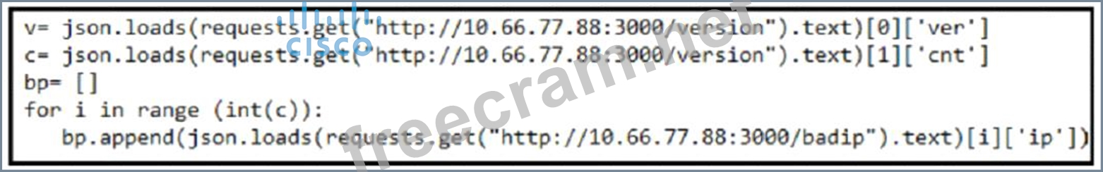 Question 404: Refer to the exhibit. (Exhibit) Which Python code snippet pr...
