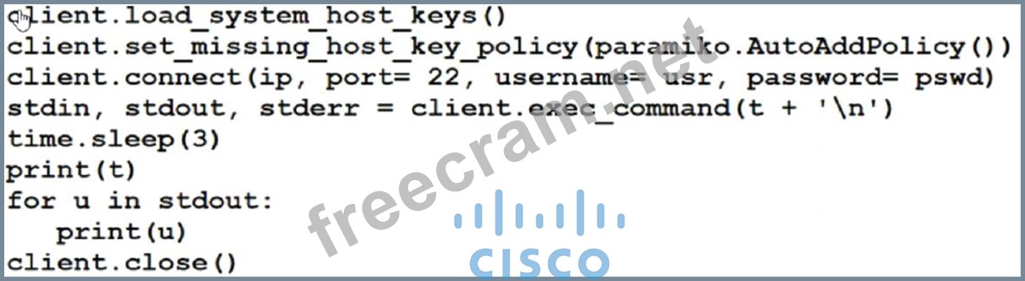 Question 404: Refer to the exhibit. (Exhibit) Which Python code snippet pr...