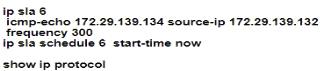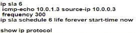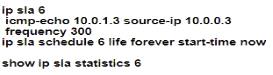 Option C is the correct choice because it includes the commands to set up an IP SLA ICMP-echo operation, which sends ICMP echo requests from R3 to the file server's IP address. The ip sla schedule command is used to specify the operation number, start time, life of the operation, and frequency of the test.