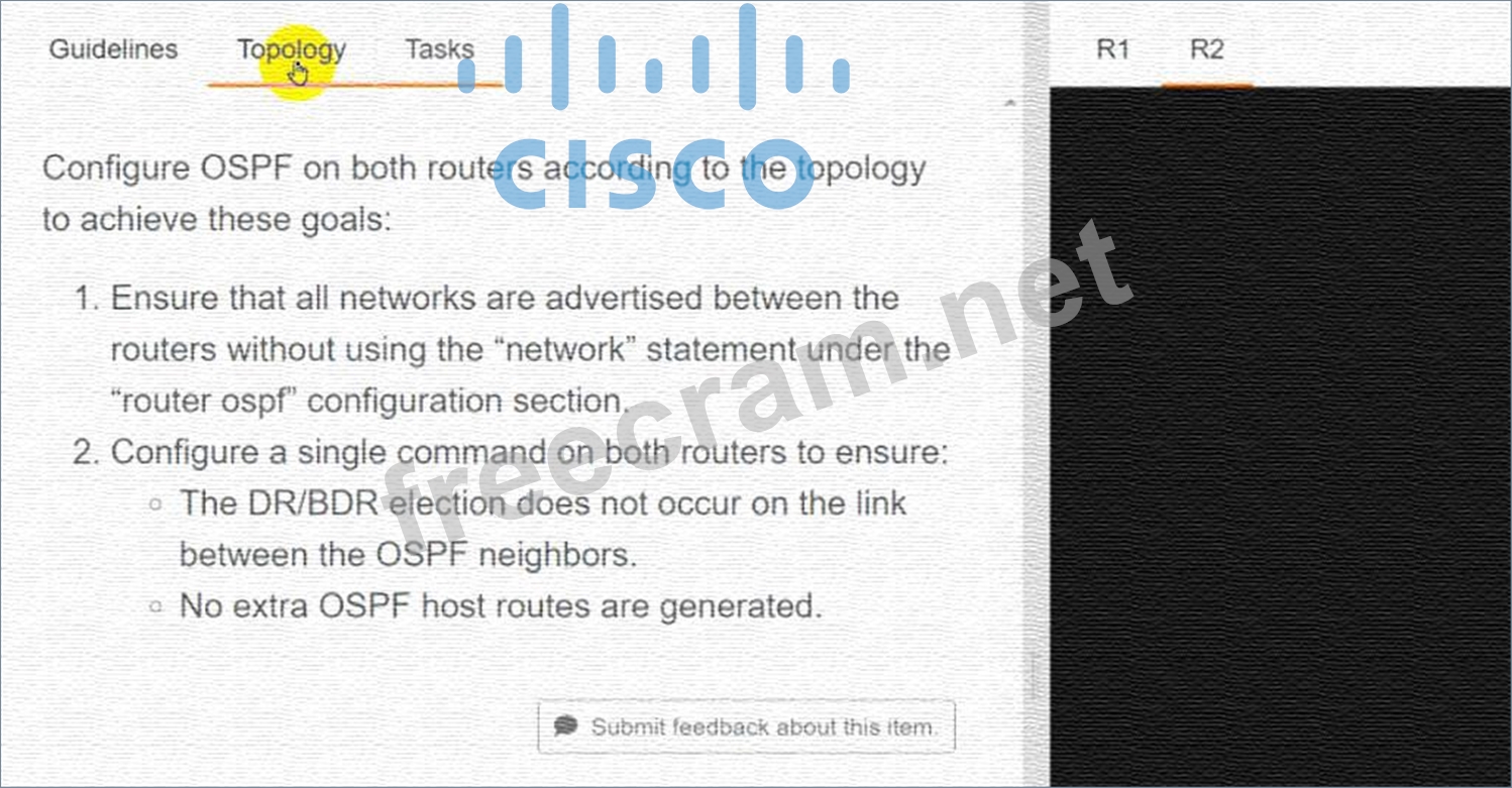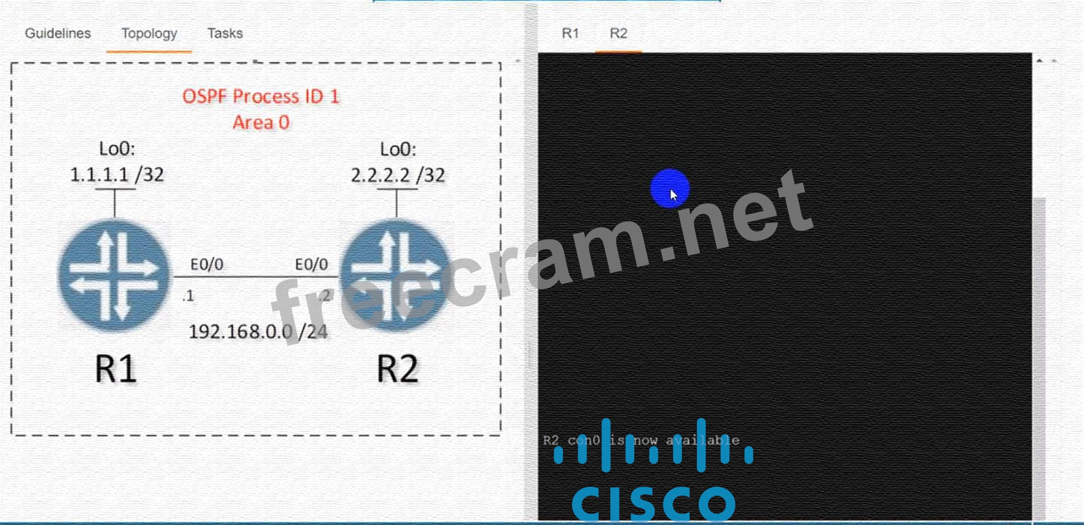 ConfigureOSPF on both routers according to the topology to achieve these goals: