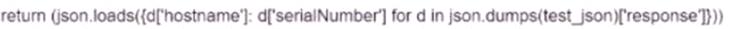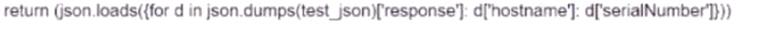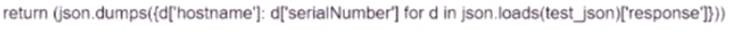 The line return json.dumps({"cat_9k": "FXS193202SE"}) serializes the dictionary {"cat_9k":