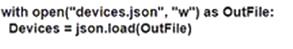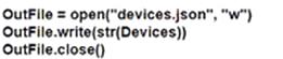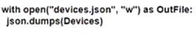 Which Python snippet shouldbeused to store the devices data structure in a JSON file?