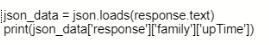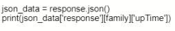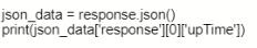 Based on the output below, which Python code shows the value of the "upTime" key?
