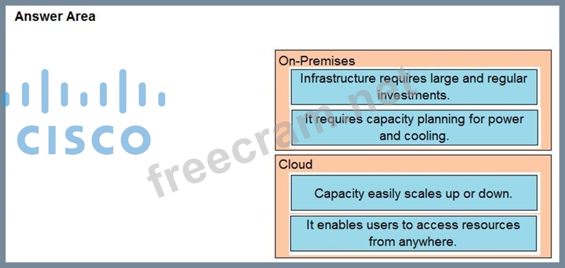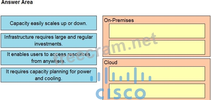 Drag and drop the characteristics from the left onto the infrastructure deployment models on the right.