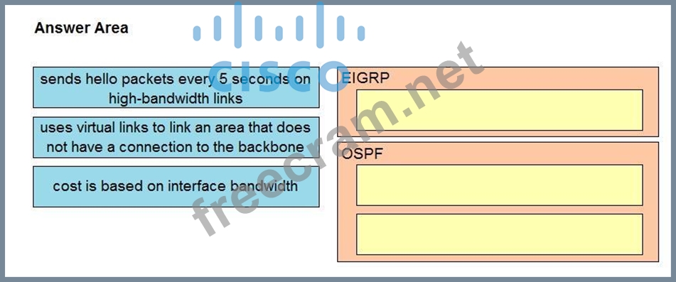 Drag and drop the characteristics from the left onto the routing protocols they describe on the right.