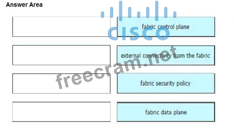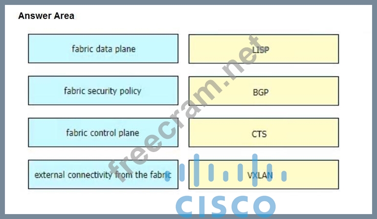 Drag and drop the Cisco SD-Access solution areas from the left onto the protocols they use on the right.