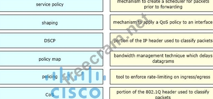 Drag and drop the Qos mechanisms from the left to the correct descriptions on the right.