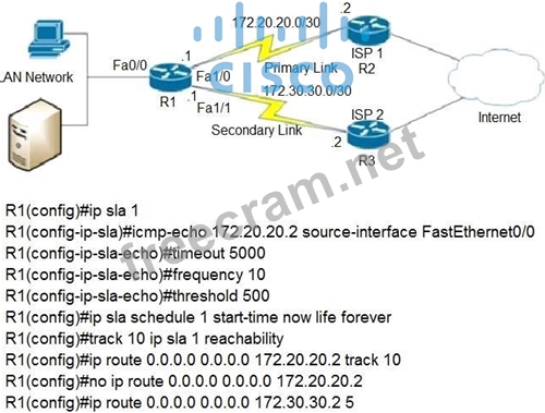 R1(config)#ip route 0.0.0.0 0.0.0.0 172.20.20.2 track 10