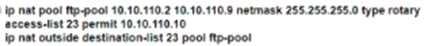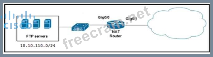 Refer to the exhibit. A network engineer must load balance traffic that comes from the NAT Router and is destined to 10.10.110.10, to several FTP servers.