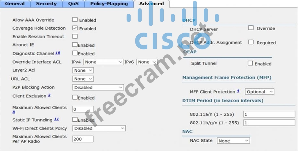 This control determines whether the Wireless LAN Controller is configured to prevent clients connected to the same Wireless Local Area Controller from communicating with each other. Wireless Client Isolation prevents wireless clients from communicating with each other over the RF. Packets that arrive on the wireless interface are forwarded only out the wired interface of an Access Point. One wireless client could potentially compromise another client sharing the same wireless network.