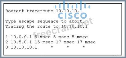 Refer to the exhibit. An engineer is troubleshooting a connectivity issue and executes a traceoute.