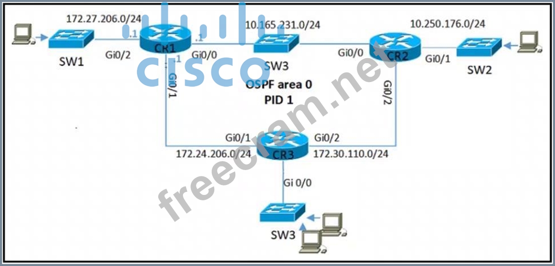 Question 522: Refer to the exhibit. CR2 and CR3 are configured with OSPF. ...