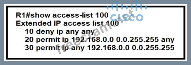 Refer to the exhibit. Extended access-list 100 is configured on interface GigabitEthernet 0/0 in an inbound direction, but it does not have the expected behavior of allowing only packets to or from