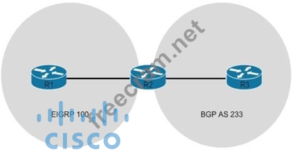 Refer to the exhibit. R2 is mutually redistributing between EIGRP and BGP.