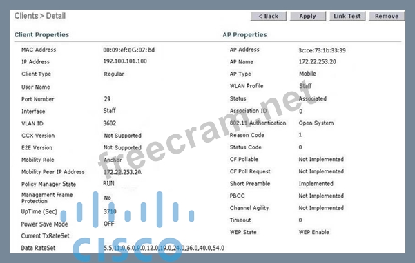 Refer to the exhibit. The WLC administrator sees that the controller to which a roaming client associates has Mobility Role Anchor configured under Clients > Detail.