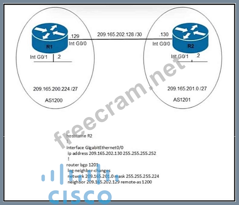 Question 573: A network engineer configures BGP between R1 and R2. Both ro...