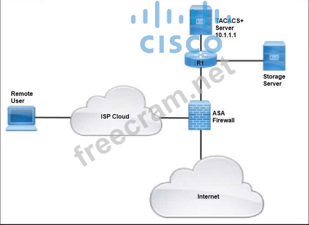 Remote users cannot access the Internet but can upload files to the storage server. Which configuration must be applied to allow Internet access?