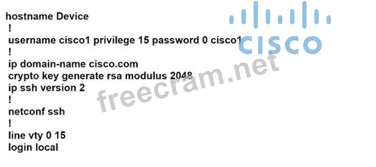 Which configuration enables a device to be configured via NETCONF over SSHv2?