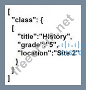 Question 31: Refer to the exhibit. What is the JSON syntax that is formed...