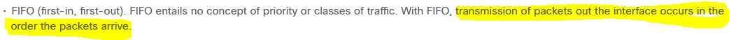 Which QoS queuing method transmits packets out of the interface in the order the packets arrive?