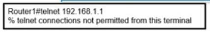 An engineer attempts to connect to another device from Route1's console port. Which configuration is needed to allow telnet connections?