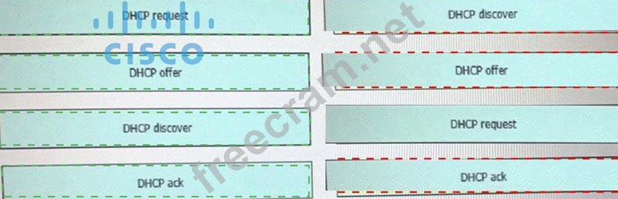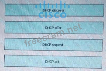 Drag and drop the DHCP messages that are exchanged between a client and an AP into the order they are exchanged on the right.