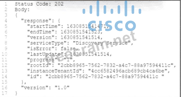 Refer to the exhibit. A POST /discovery request spawns an asynchronous task. After querying for more information about the task, the Cisco DNA Center platform returns the REST API response. What is the status of the discovery task?