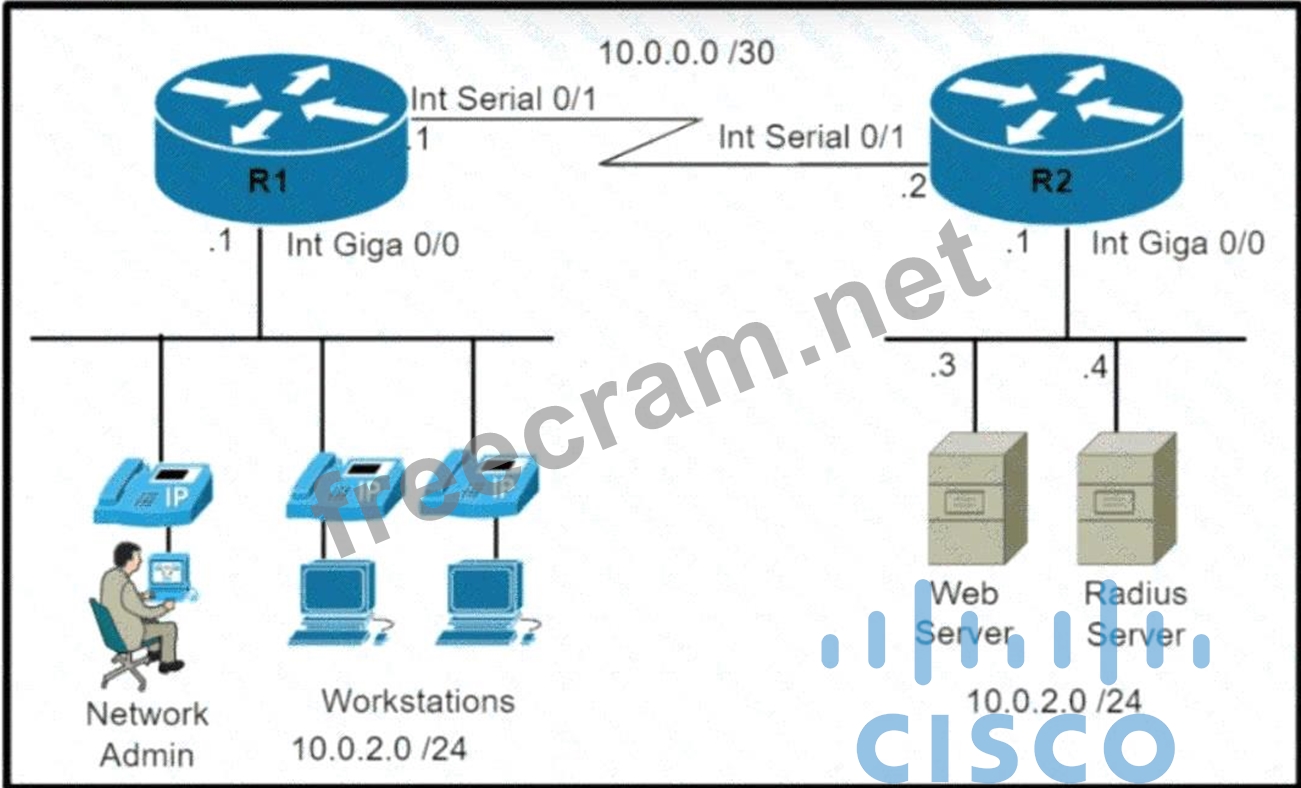 Refer to the exhibit Which command set is required on router R1 to allow the network administrator to authenticate via RADIUS'?