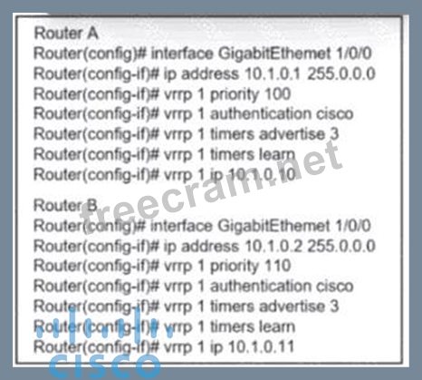 Refer to the exhibit. An engineer must adjust the configuration so that Router A becomes the active router.