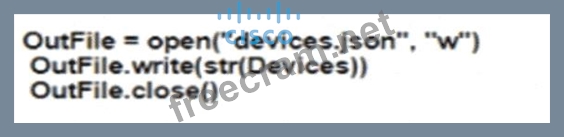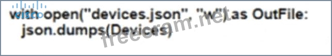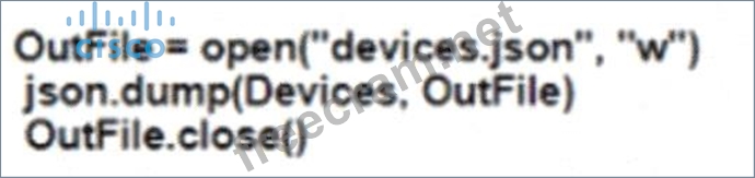 Refer to the exhibit. Which Python snippet stores the data structure of the device in JSON format?