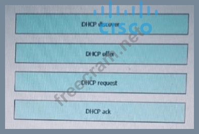 Drag and drop the DHCP messages that are exchanged between a client and an AP into the order they are exchanged on the right.