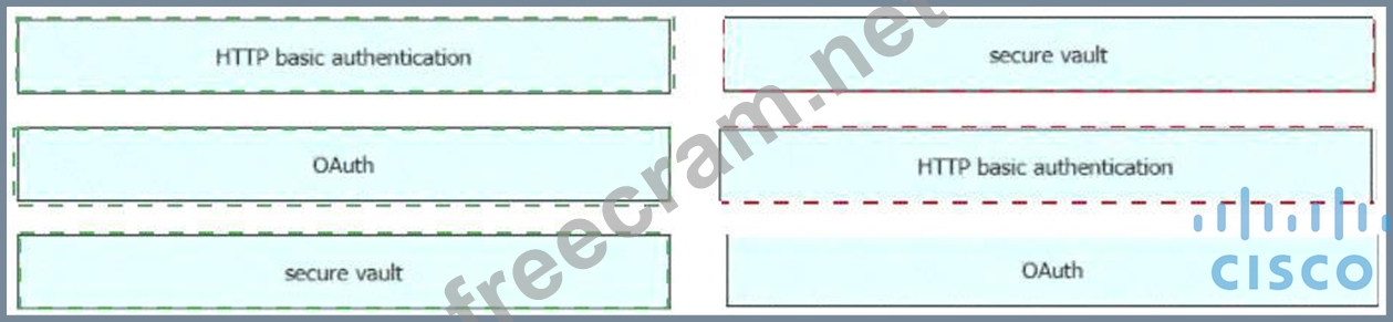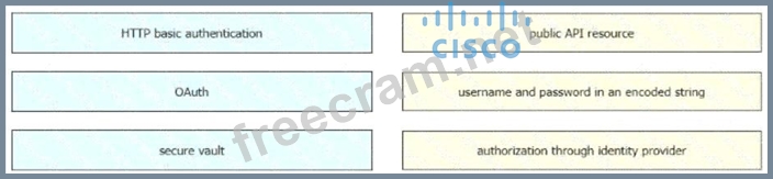 Drag and drop the REST API authentication methods from the left onto their descriptions on the right.