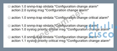 Refer to the exhibit. A network engineer must be notified when a user switches to configuration mode. Which script should be applied to receive an SNMP trap and a critical-level log message?