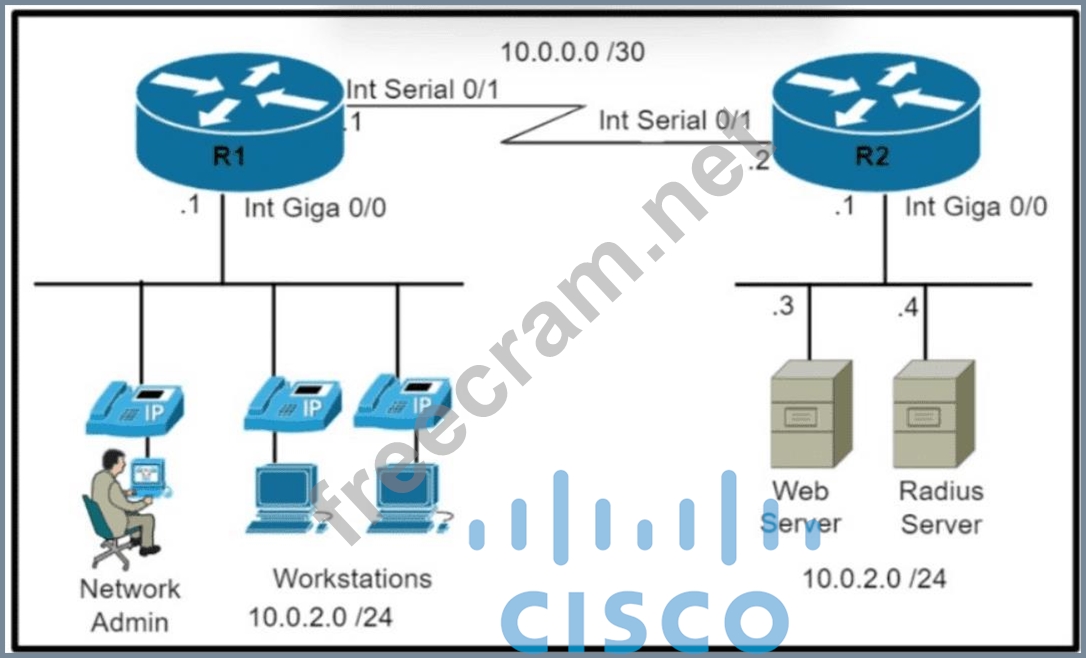 Refer to the exhibit Which command set is required on router R1 to allow the network administrator to authenticate via RADIUS'?