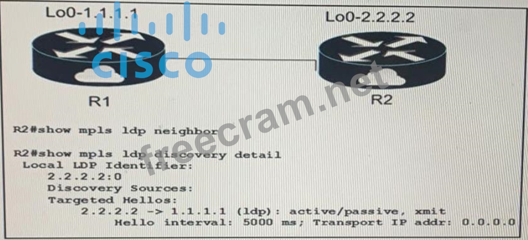 When implementing an LDP protocol, an engineer experienced an issue between two directly connected routers and noticed that no LDP neighbor exists for 1.1.1.1.
