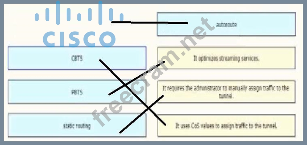 Question 14: Drag and drop the methods of Cisco MPLS TE tunnel traffic as...