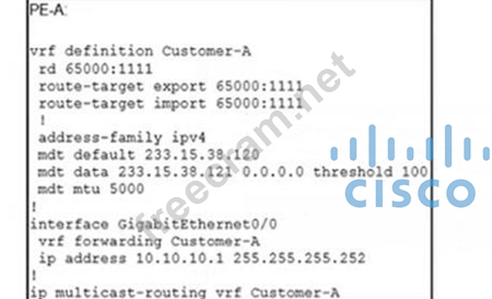 Refer to the exhibit. An engineer is Implementing Auto-RP and reviewing the configuration of the PE-A. Which configuration permits Auto-RP messages to be forwarded over this interface?