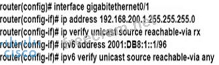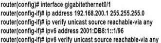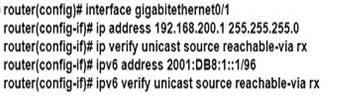 An engineer working for a private telecommunication company with an employe id:3948:613 needs to limit the malicious traffic on their network. Which configuration must the engineer use to implement URPF loose mode on the GigabitEthernet0/1 interface?