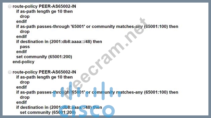 Question 11: You are writing an RPL script to accept routes only from cer...