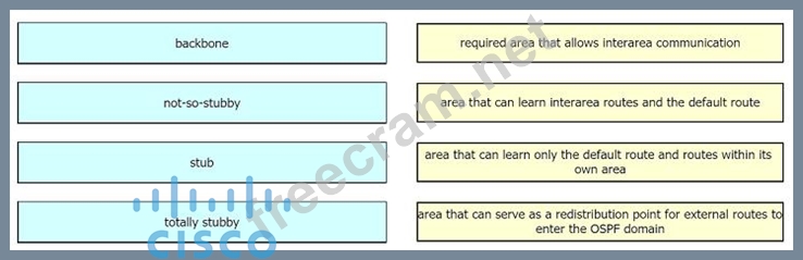 Question 81: Drag and drop the OSPF area types from the left onto the cor...