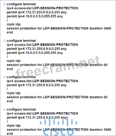 Refer to the exhibit. The network team must implement MPLS LDP session protection with two requirements: