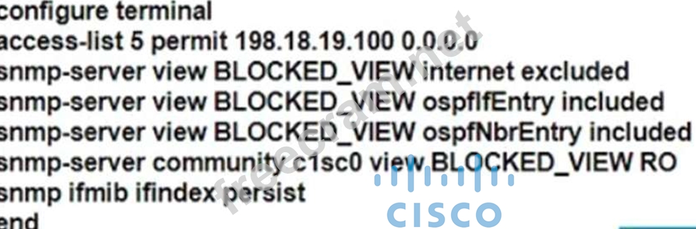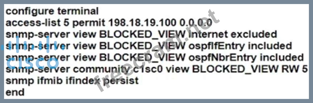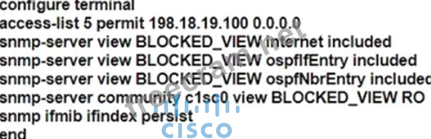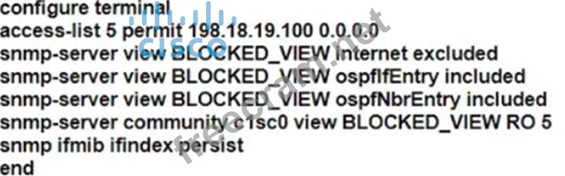 * Restrict the SNMP community to only the monitoring server with IP address 198.18 19 100/32.