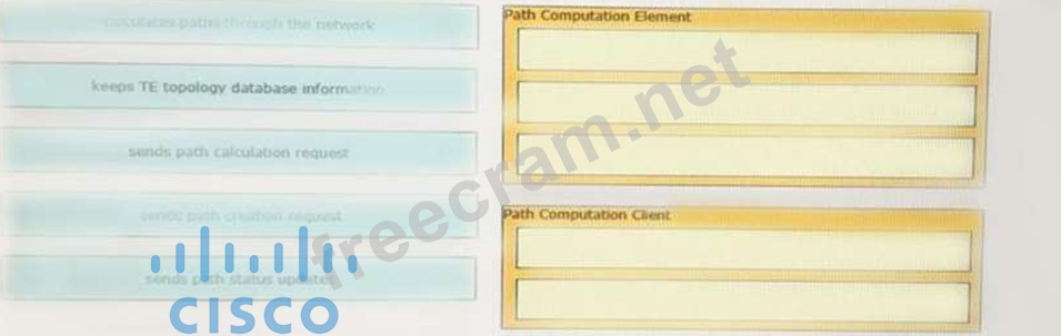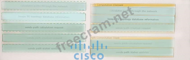 Path Computation Element (Calculates paths through the network, keeps TE topology database information, sends path status updates) Path computation Client (sends path calculation request, sends path creation request) Path Computation Element (PCE) Represents a software module (which can be a component or application) that enables the router to compute paths applying a set of constraints between any pair of nodes within the router's TE topology database. PCEs are discovered through IGP.